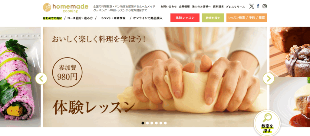 会員制で月1回または月2回のクラス制を採用しており、講師が毎回変わることなく継続して学べるのが魅力。体験レッスンは980円で、本格的なパンやお菓子作りの魅力を実感できます。