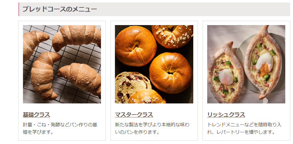単発講座も充実しており、旬の野菜や果物を使ったパンや、季節の催事に合わせたパン、話題のパンを作ることができます。