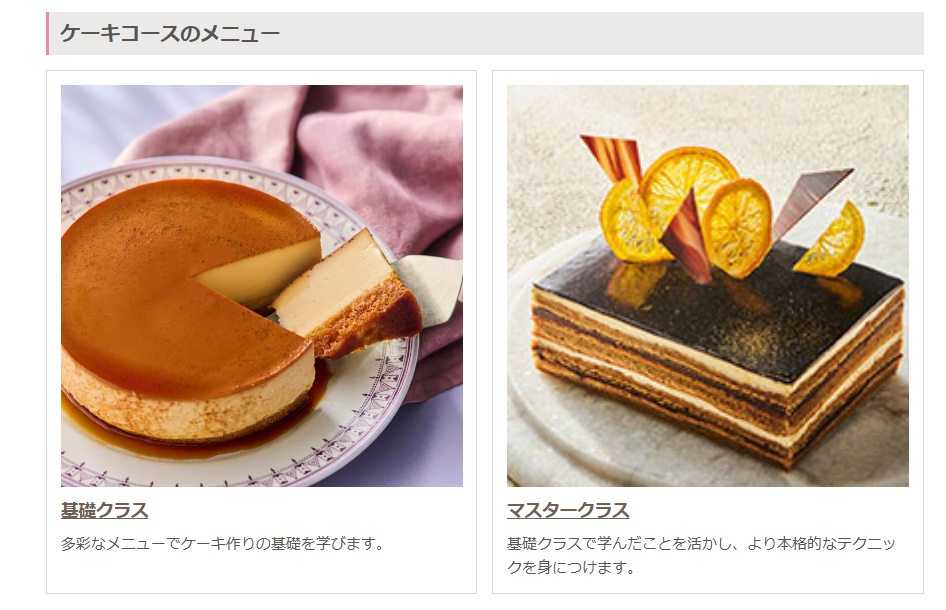 経験者の方も、初心者の方も、初級コースから受講して、お菓子作りの技術を基礎からしっかり学びます。マドレーヌ、フィナンシェ、カトルカールなど、お菓子の基本生地を学び、器具の使い方やコツも丁寧に教えてもらえます。上級コースでは、ドイツ菓子やウィーン菓子なども取り入れ、お菓子のバリエーションを広げます。