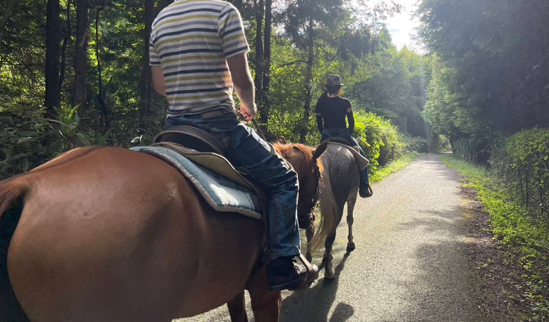 馬に乗ったまま馬場を出て、自然の中や施設周辺をのんびり散策する特別な体験。開放感を楽しみたい方におすすめです。